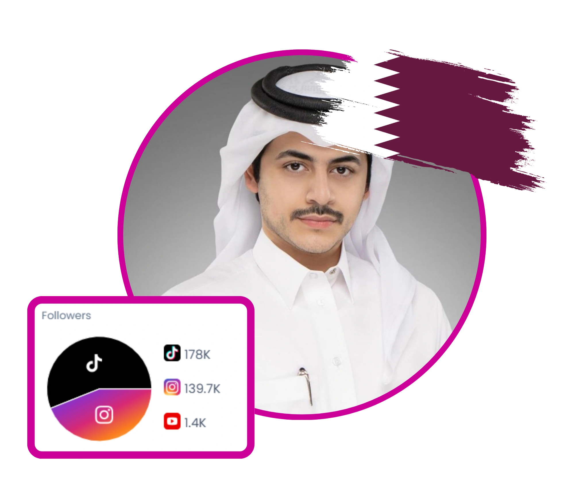 QA-based female entrepreneur and artist who leads five brands (marketing, beauty, tourism, fashion, and more) in Qatar. Public speaker and columnist, renowned for strategic messaging, national branding, and cultural diplomacy. Active on Instagram and TikTok with content spanning art, entrepreneurship, and women empowerment.