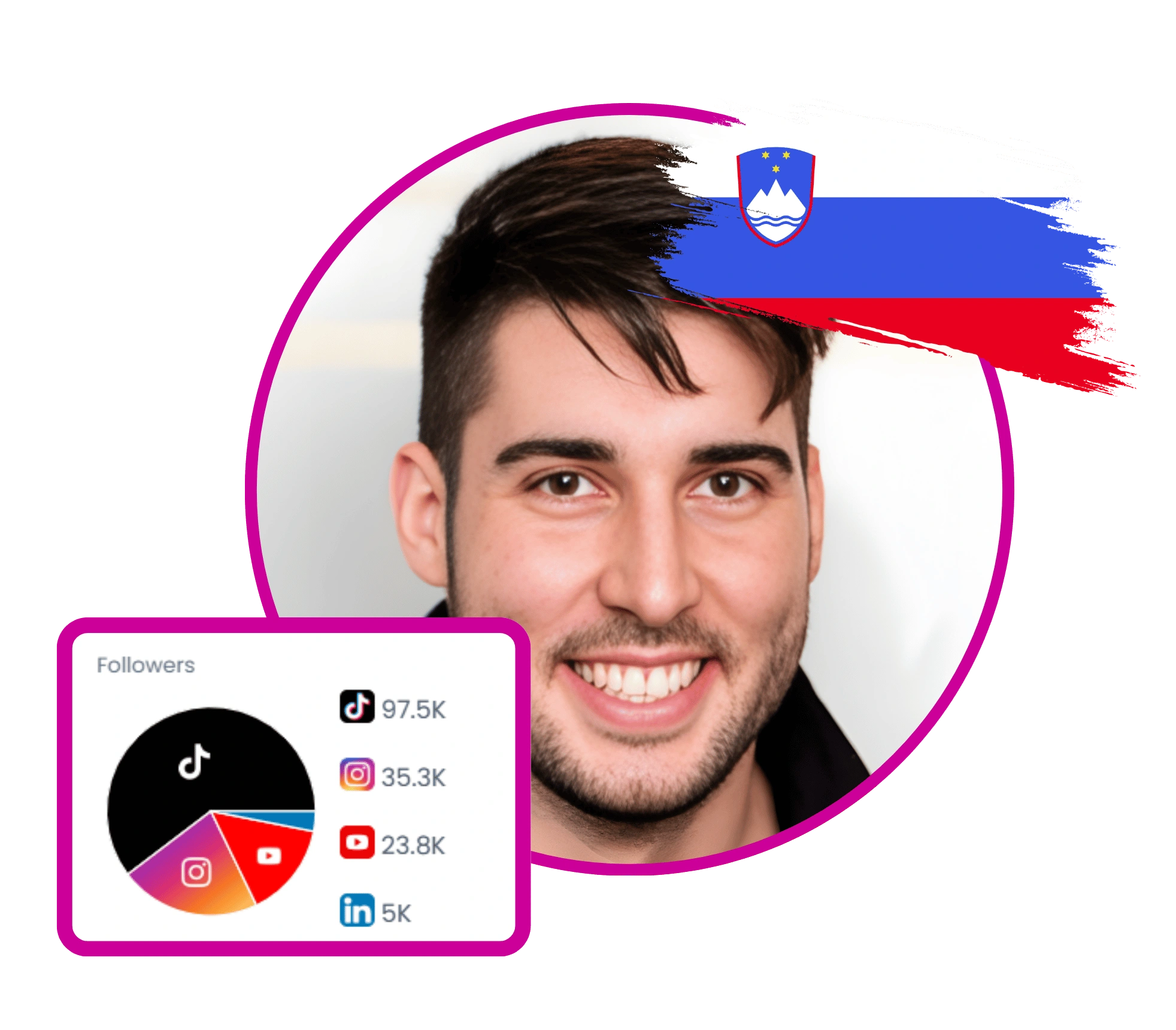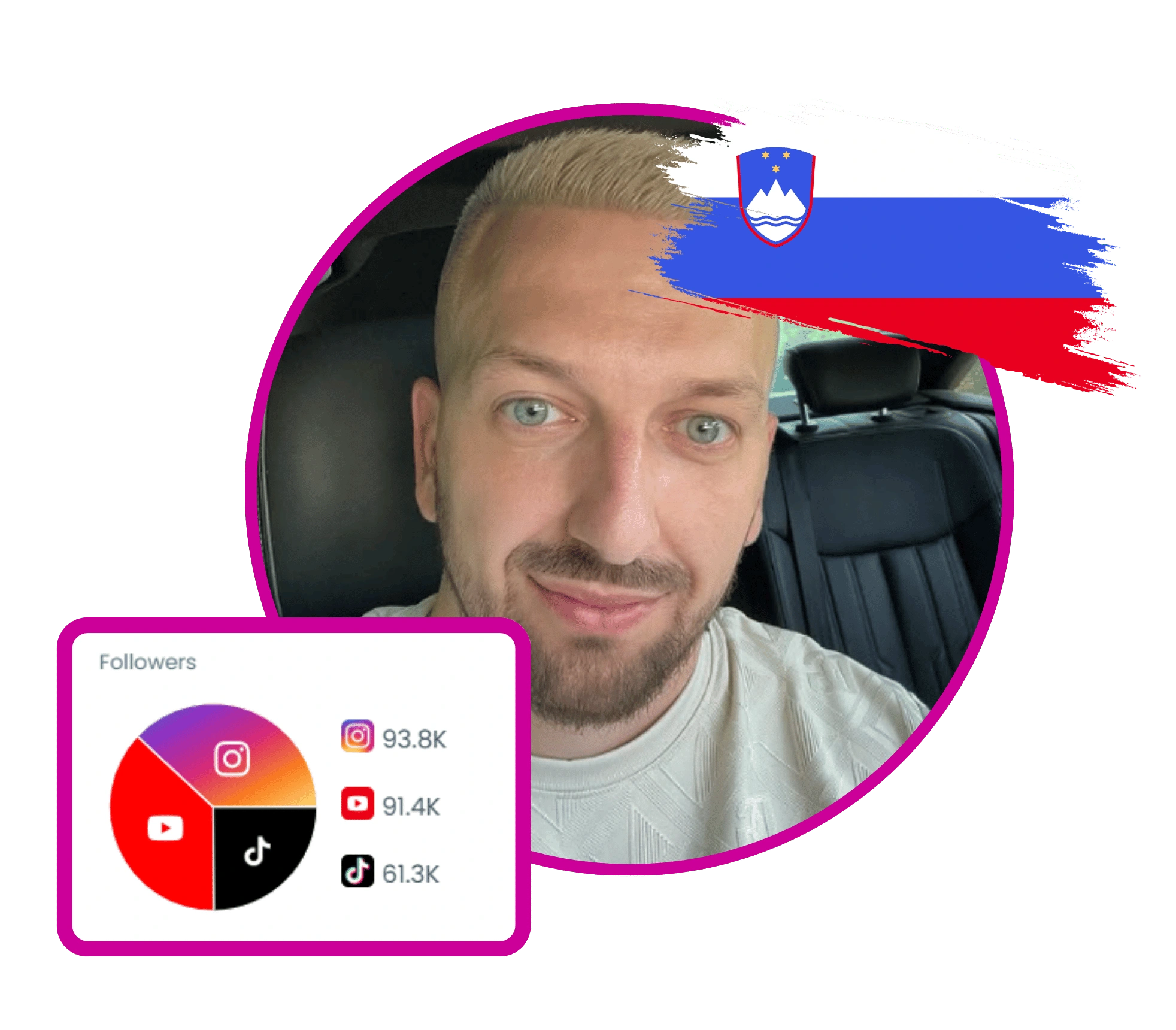 David Milosavljević is a top Slovenian content creator and TikTok project leader who strategizes social media campaigns, produces branded video content, and manages influencer partnerships. He leads Slovenian TikTok initiatives, runs campaigns for brands, and serves as ambassador for Trade Republic, CarVertical, and T-2. He operates across YouTube, Instagram, and TikTok with a strong audience in Slovenia, and maintains a dedicated business site for collaborations.