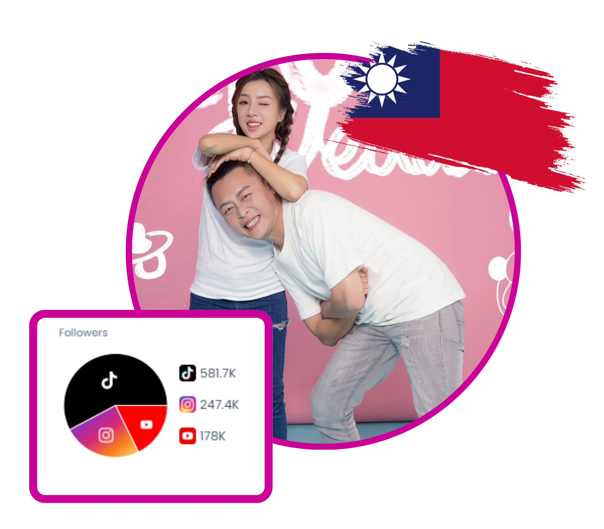 Taiwan-based couple sharing everyday life, humor, and travel in Chinese. Their content centers on playful husband-and-wife moments, spontaneous skits, travel diaries, and wedding vibes. Active on TikTok, Instagram, and YouTube, they showcase relatable domestic life, lighthearted pranks, and genuine partnership, with product collaborations and group events linked via their IG.