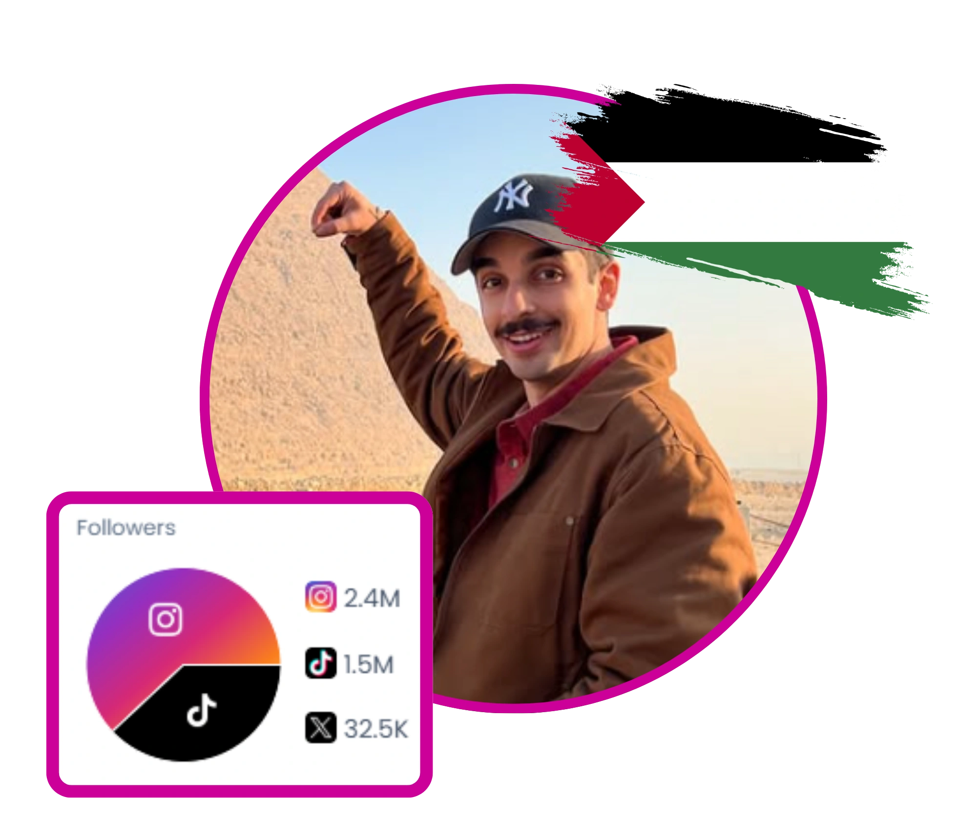 Tareq is a content creator from Palestine, known for his engaging and humorous posts on TikTok and Instagram. His content often features travel experiences, behind-the-scenes glimpses of video productions, and lighthearted commentary on various topics. He has a significant following, with posts receiving millions of likes, showcasing his popularity. Tareq's themes include adventure, humor, and personal anecdotes, appealing to a broad audience interested in entertainment and travel.