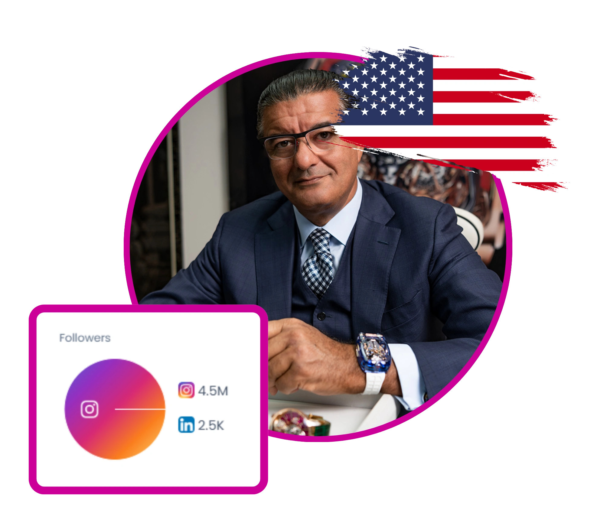 Jacob Arabo is the Founder and Creative Director of Jacob & Co., a luxury watch and jewelry brand known for its innovative designs and collaborations with high-profile figures. His social media presence showcases extravagant timepieces, often inspired by automotive design and space themes, highlighting craftsmanship and luxury. He engages with a global audience through visually stunning posts that celebrate milestones, partnerships, and unique creations, positioning himself as a leader in the luxury market.