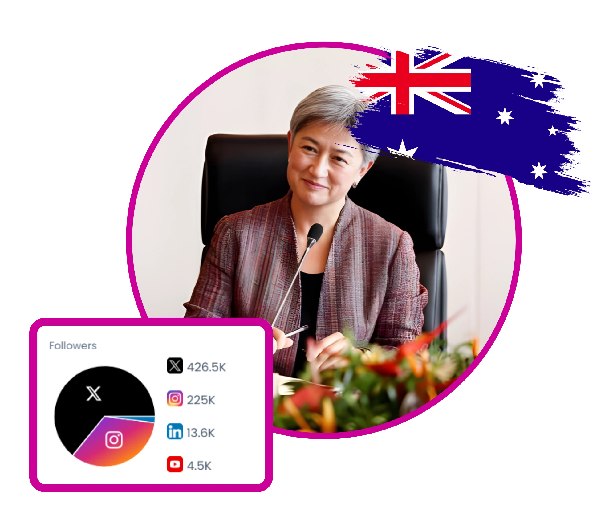 Penny Wong is the Australian Minister for Foreign Affairs and Leader of the Government in the Senate. She is a Labor Senator for South Australia, focusing on international relations, diplomacy, and government policies. Her content primarily includes updates on foreign affairs, government initiatives, and speeches on national and international issues. She frequently addresses topics such as climate change, social justice, and antisemitism, and shares insights from diplomatic engagements and public events.