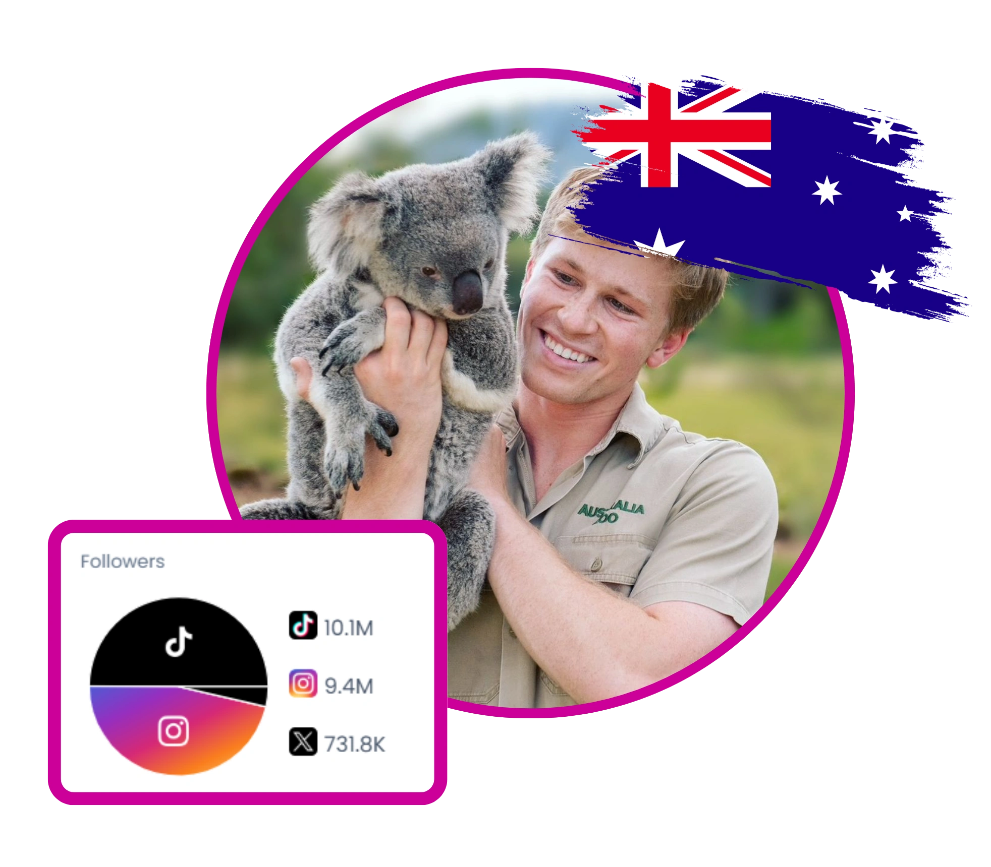 Robert Irwin is a wildlife conservationist and television personality known for his work at Australia Zoo. He shares his adventures and experiences with wildlife through social media, often posting about his interactions with animals, conservation efforts, and behind-the-scenes moments from his television appearances. His content includes educational posts about wildlife, personal moments with family and friends, and promotional content for conservation causes and partnerships.