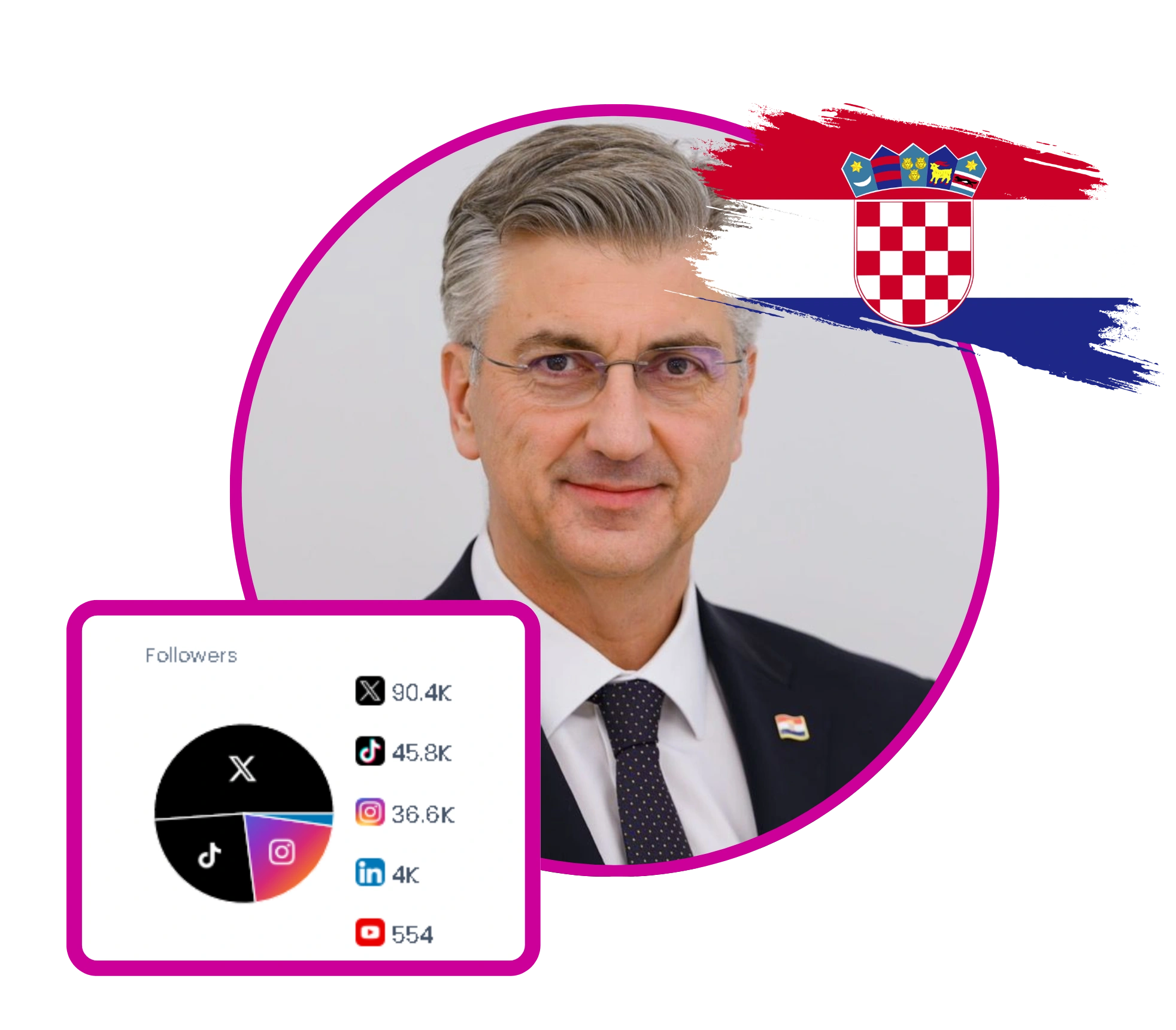 Andrej Plenković is the President of the Croatian Government and the Croatian Democratic Union (HDZ). His social media presence focuses on national governance, European Union relations, and support for Ukraine. He frequently shares updates on political achievements, economic growth, and public welfare initiatives. Plenković emphasizes Croatia's role in the EU and advocates for national interests, showcasing a commitment to stability and development in Croatia.