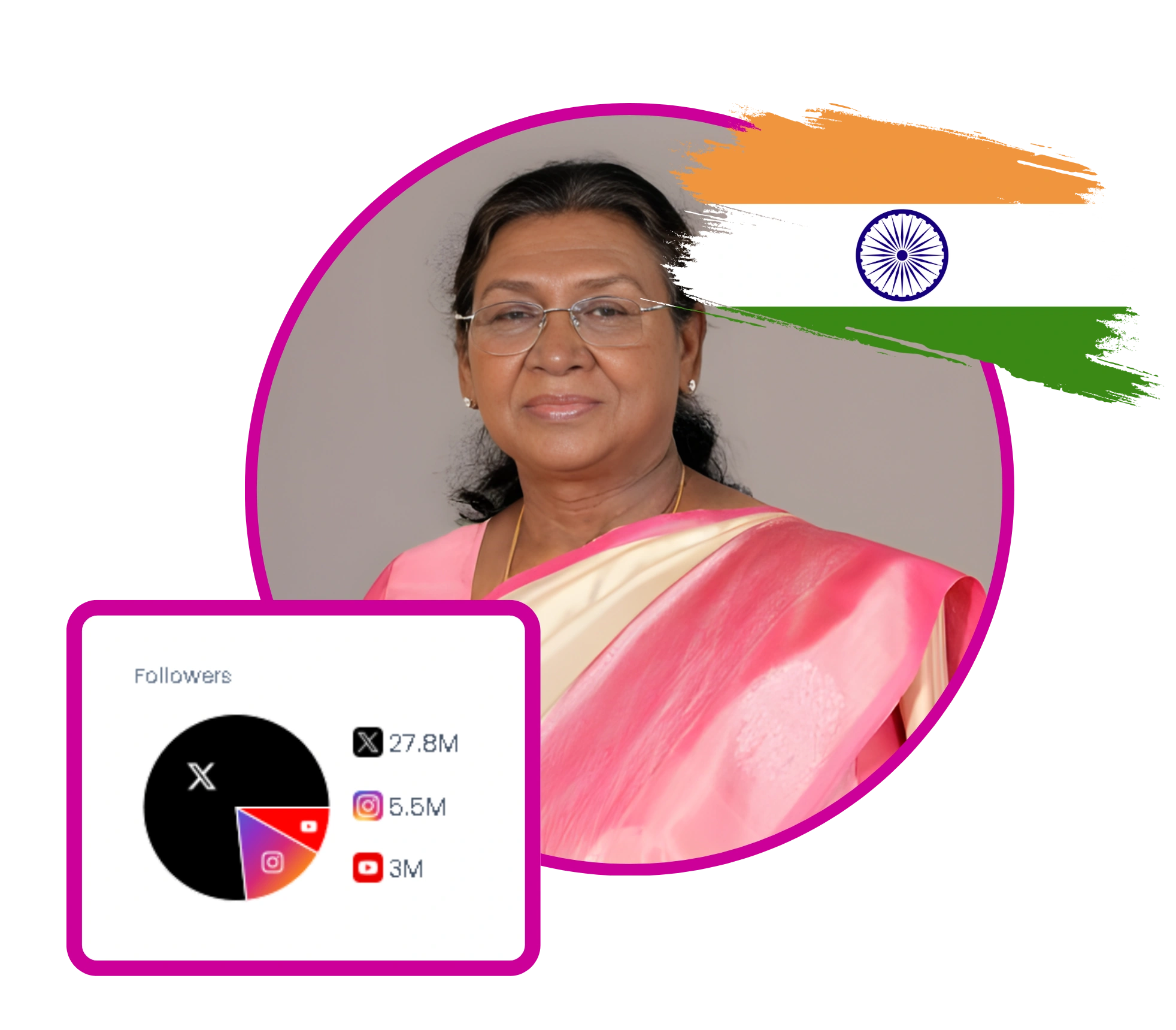 Smt Droupadi Murmu is the President of India, actively engaging in public service and governance. Her social media presence highlights her commitment to social justice, education, and cultural diversity. She frequently shares updates on state visits, honors, and initiatives aimed at empowering marginalized communities. Her posts reflect a focus on women's empowerment and cultural cohesion, showcasing her role in promoting India's heritage and international relations.
