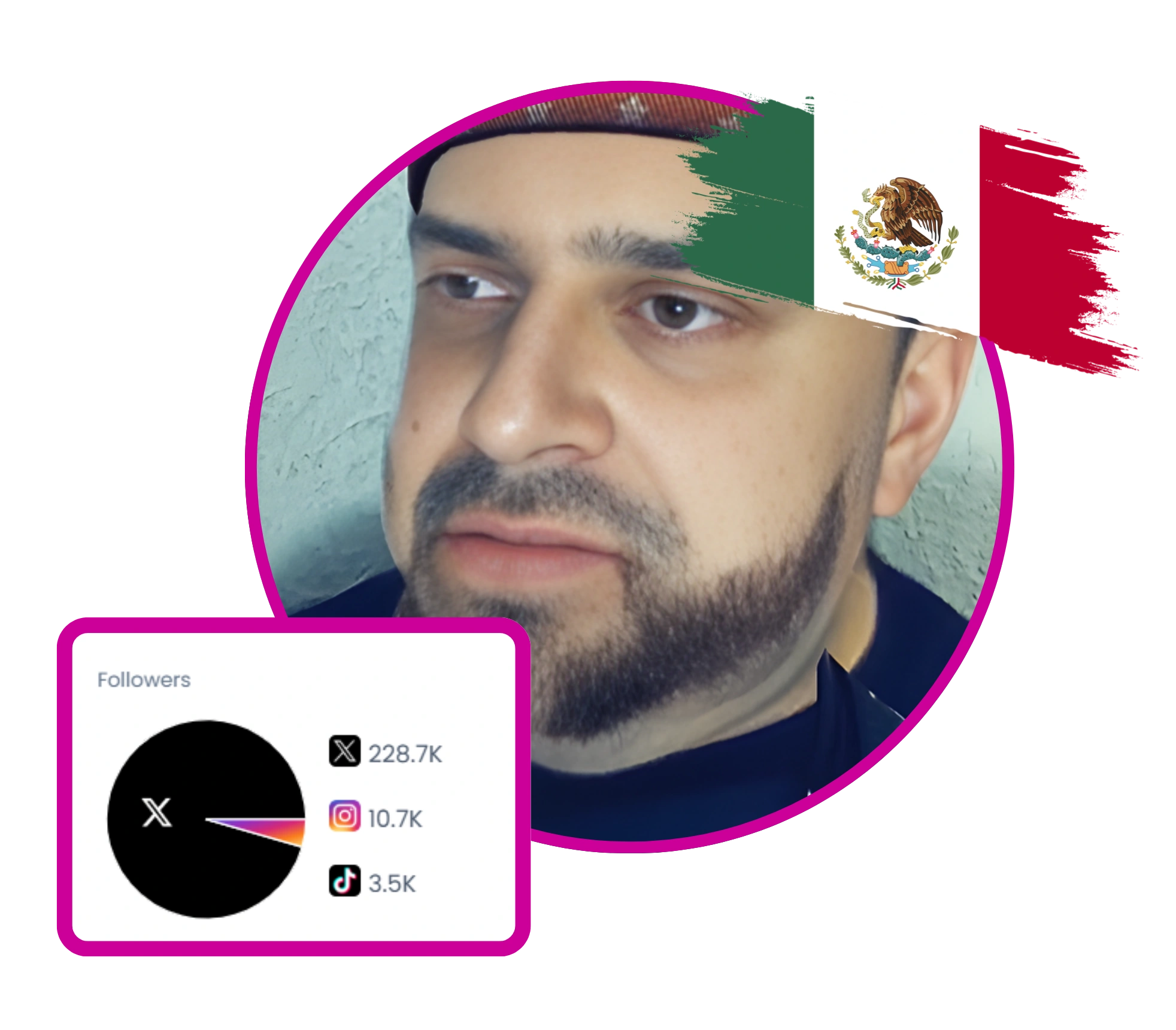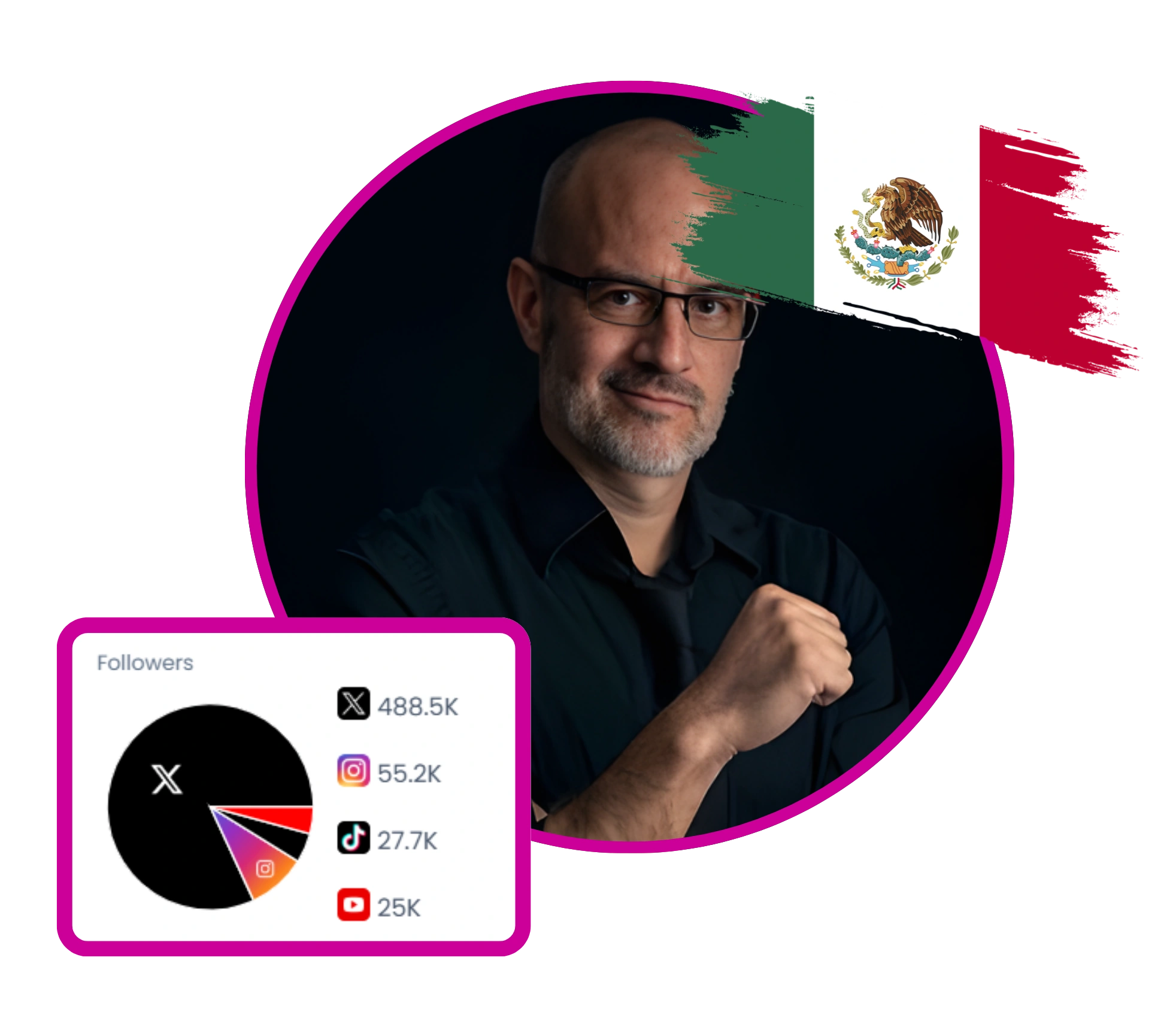 Mexican engineer, technologist, and entrepreneur known for daily fitness content and outspoken political commentary. Builds a family-centered personal brand across TikTok, X (Twitter), and Instagram, sharing workouts, lifestyle tips, and critiques of government actions.
