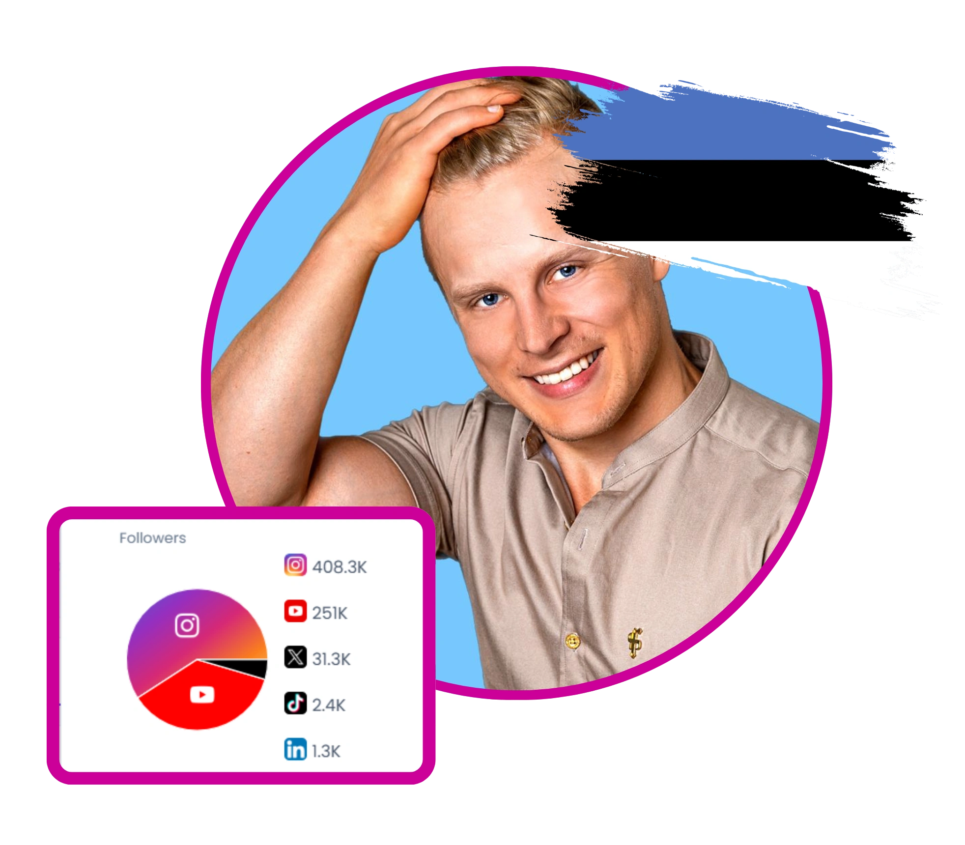 Estonian artist, producer, YouTuber and podcaster known for music projects, Baltic travel vlogs, and lively collaborations with Ishowspeed. Builds a cross-platform presence on Instagram, TikTok, and YouTube, blending automotive and cultural content with behind-the-scenes creative work.