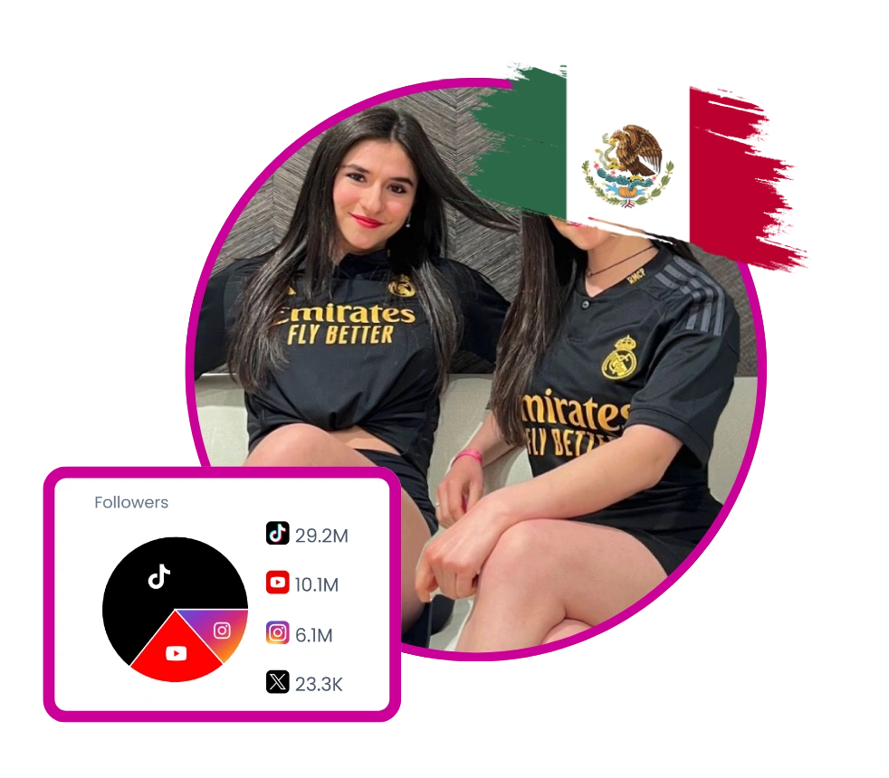 Ara y Fer are twin sisters from Mexico with a strong presence on TikTok and Instagram, known for their engaging content centered around soccer, dance, and humor. They frequently create videos imitating soccer celebrations, showcasing their love for Real Madrid, and participating in trending challenges. Their content often features themes of twin dynamics and Mexican culture, appealing to a broad audience with their relatable and entertaining posts.