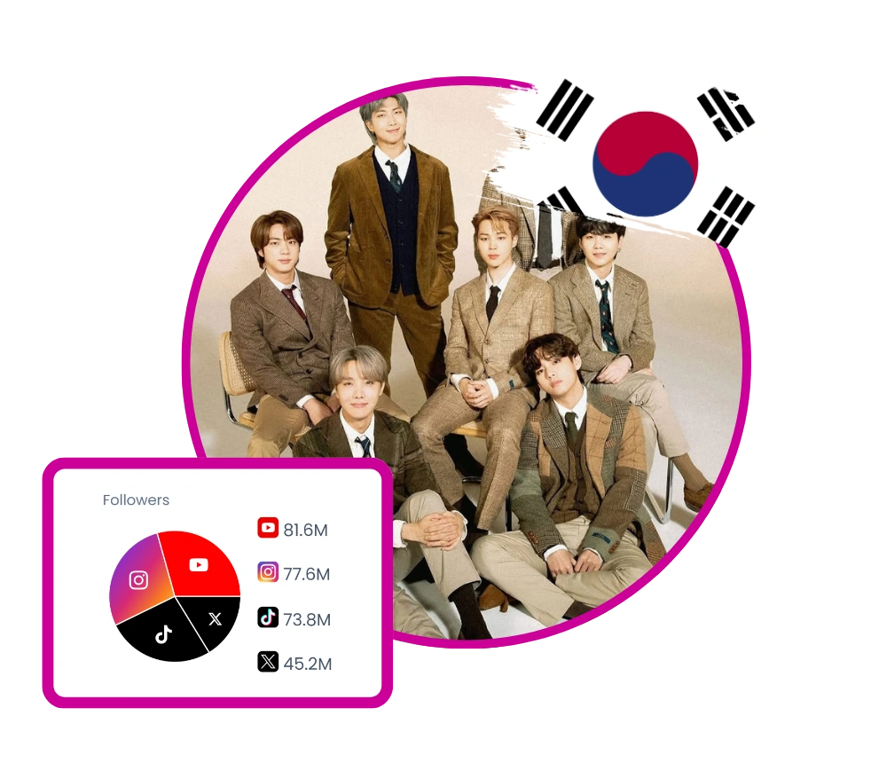 BTS, also known as Bangtan Sonyeondan, is a globally renowned South Korean boy band. Their social media presence is marked by official updates, music releases, and behind-the-scenes content. They engage with fans through various platforms, sharing insights into their tours, music videos, and personal projects. BTS is known for their influence in the music industry, particularly in K-pop, and their content often includes collaborations with other artists and promotional activities for their music and tours.