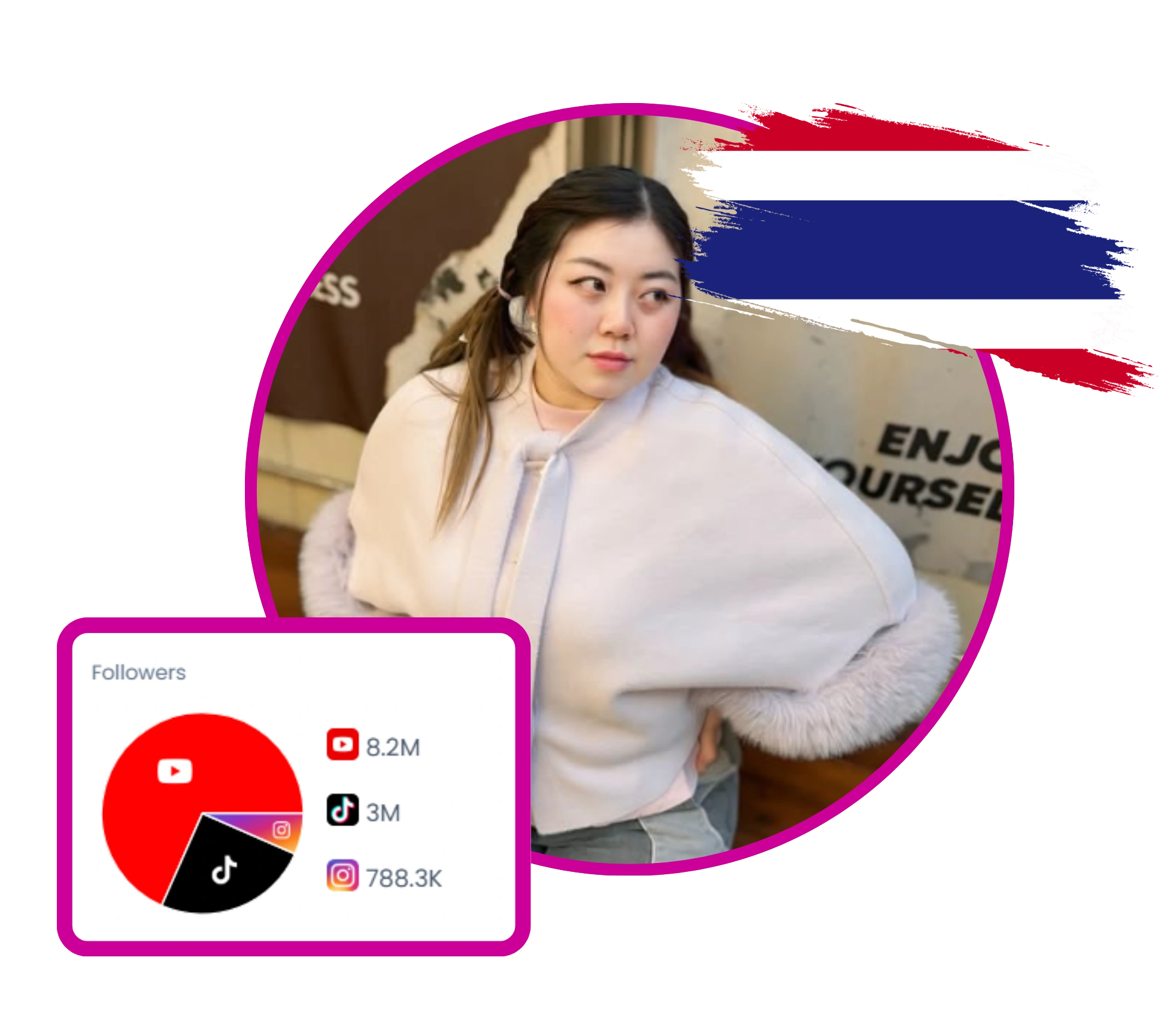 Eoirndaime is a prominent Thai social media personality with a massive following of over 13 million on TikTok. She engages her audience with a mix of pranks, travel clips, and personal anecdotes, often highlighting her relationships and daily life. Her content is characterized by vibrant interactions and relatable themes, appealing to a young audience. Eoirndaime also promotes her brand, Daime, through various platforms, showcasing her entrepreneurial spirit.