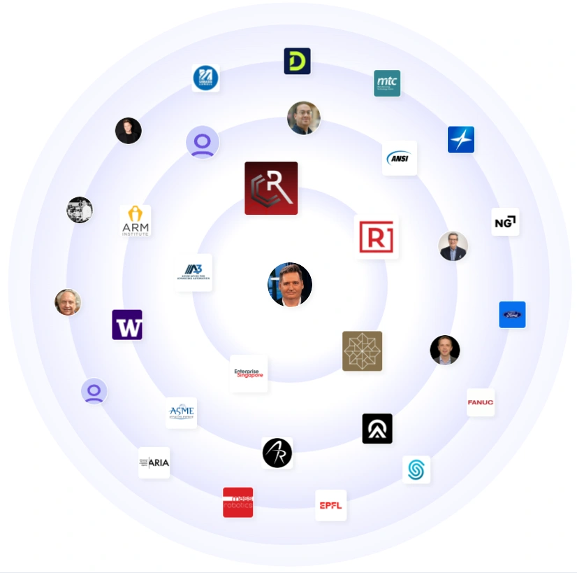 Aaron’s circle includes ASTM, A3, ANSI, ARM Institute, EPFL, and ASME communities. You will also see leaders from FANUC, Ford, Lockheed Martin, and Northrop Grumman. University hubs and startup founders show up alongside policymakers and integrators. The mix gives him reach across research, standards, and the production lines that adopt them.