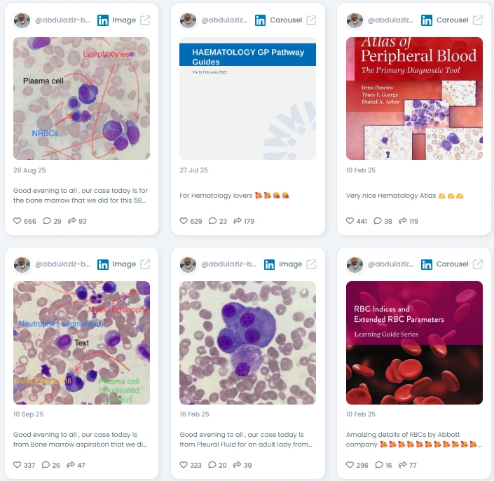 Abdulaziz shares haematology cases with the calm confidence of someone who has seen it all. His posts are full of annotated microscopy images, practical guides, and pathway resources that clinicians actually use. He writes for peers, trainees, and lab teams, translating complex diagnostics into teachable moments. People follow because his content is both technically sharp and quietly generous.