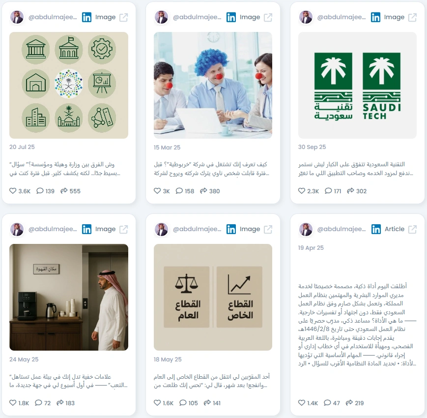 With a Favikon Authenticity Score of 97.5/100, Abdulmajeed exemplifies credibility and trust. His posts are infused with personality and perspective, often mixing humor with strategic analysis. His audience engages with thoughtful questions, anecdotes, and discussions that go beyond surface-level praise. His voice remains consistent across Arabic and English, reflecting his dual focus on regional expertise and global insight. Each post feels personal yet precise, demonstrating a rare mix of authority and relatability.