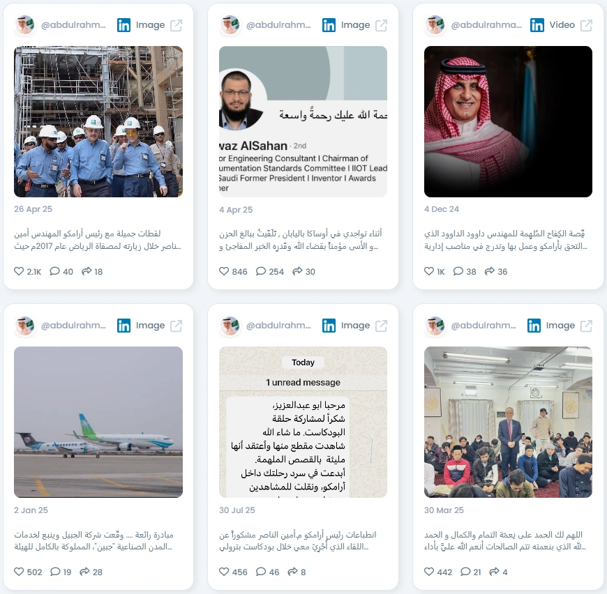 People listen to Abdulrahman because his voice carries authenticity and kindness. His posts mix personal reflection with practical guidance, often highlighting lessons from his Aramco experience or celebrating peers and mentees. Whether he shares a story from his travels or advice from his coaching sessions, his tone remains grounded and human. His bilingual communication in Arabic and English allows him to reach a diverse audience while maintaining cultural relevance and emotional depth.