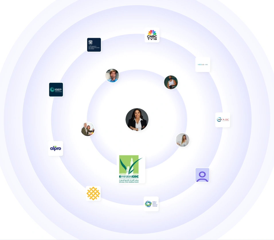 Alicia’s network includes global water councils, sustainability agencies, environmental institutes, consulting firms, and technical associations. She frequently interacts with experts, policymakers, and innovators shaping the future of water management. Her network extends across the Middle East, Europe, and the United States. Names like ISEP, EmiratesGBC, and CNBC TV18 appear throughout her interactions, showing her credibility across sectors.