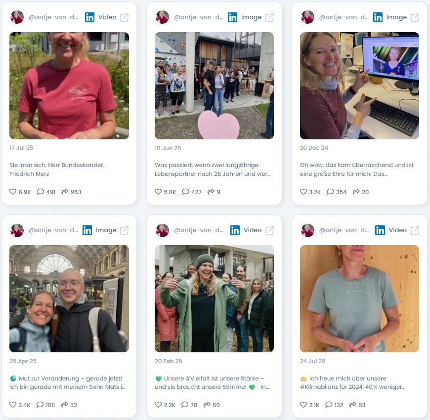 Antje von Dewitz has become one of the most trusted voices in Europe when it comes to sustainable business and responsible leadership. Her content blends warmth, conviction, and real-world action in a way few executives manage.