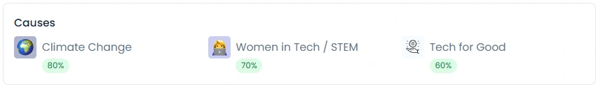 - Validation and advocacy for products or initiatives tied to sustainability and tech for good.
