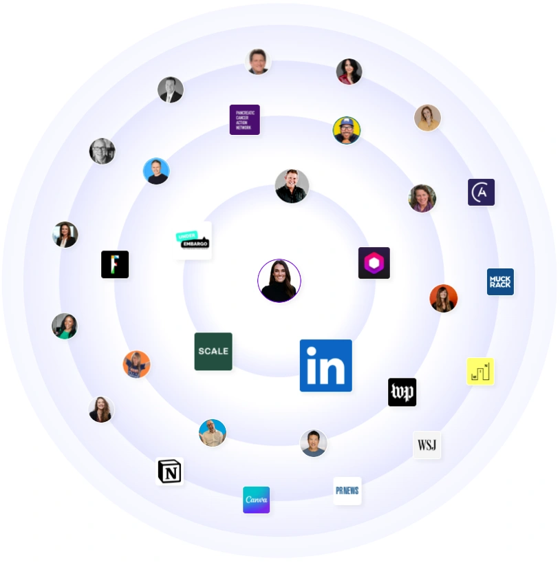 Becca’s circle spans venture, media, and the creator economy. You will see Scale Venture Partners, LinkedIn, Notion, Canva, and Muck Rack in her orbit. Journalists from WSJ and WaPo engage with her insights. Operators, CMOs, and top LinkedIn creators show up in comments and on her podcast. This gives her message reach, credibility, and real world feedback.