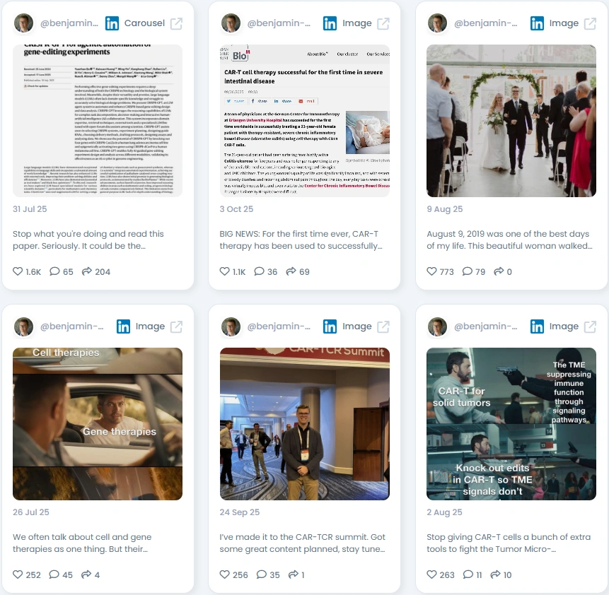 Benjamin’s value is clarity. He reads the study, tests the claim, and shows the operational impact. The tone is friendly and exact, which keeps experts engaged. If you care about getting cell and gene therapies to more patients, keep Benjamin on your feed.