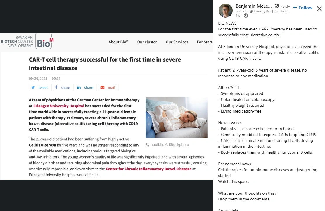 Advanced therapies are scaling from promise to production. Investors and teams need voices that connect clinical data to factory reality. Benjamin sits exactly there. He helps the field move faster without skipping the steps that protect patients.