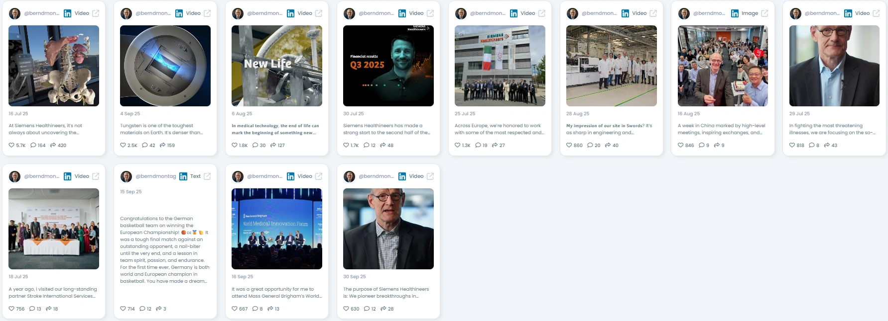 Bernd Montag turns complex healthcare tech into stories people actually want to hear. As CEO of Siemens Healthineers, he mixes factory-floor curiosity with boardroom clarity. His feed is equal parts innovation tour, team shout-outs, and straight talk on where medicine is headed. The result is a trusted voice that bridges engineers, clinicians, and patients.