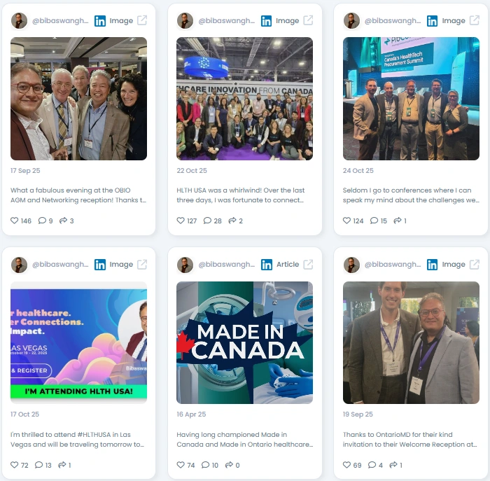 Bibaswan Ghoshal brings an energetic, people-first voice to the health innovation space. His posts feel warm and grounded, yet packed with insight from real industry work. He celebrates partnerships, shares wins from the Canadian ecosystem, and highlights the momentum behind local innovation. He speaks like someone who truly loves bringing smart people together to build better healthcare.