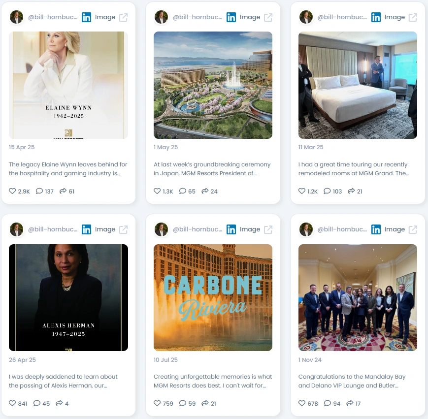 People listen to Bill because he communicates like a true leader: confident but humble, polished yet approachable. His posts often celebrate his team, honor hospitality icons, and showcase milestones that matter to the MGM family. When he writes, it feels personal and authentic rather than promotional. Followers appreciate that his success comes with gratitude and that he consistently uses his platform to recognize others.