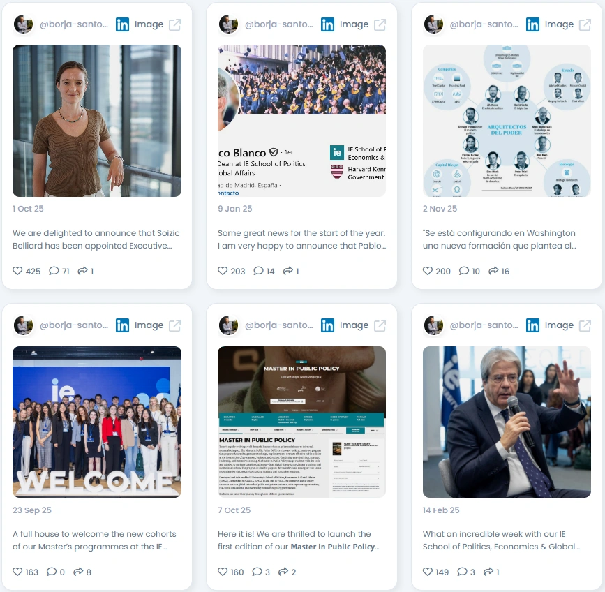With an Favikon Authenticity Score of 94/100, Borja stands out as a thought leader who genuinely engages with his academic and professional community. His posts feature real institutional achievements, faculty updates, and collaborative efforts within IE University. Comments often come from professors, researchers, and international partners, reflecting authentic dialogue and respect. His content remains grounded in his mission to elevate education and empower the next generation of leaders, avoiding generic praise or over-polished promotion.
