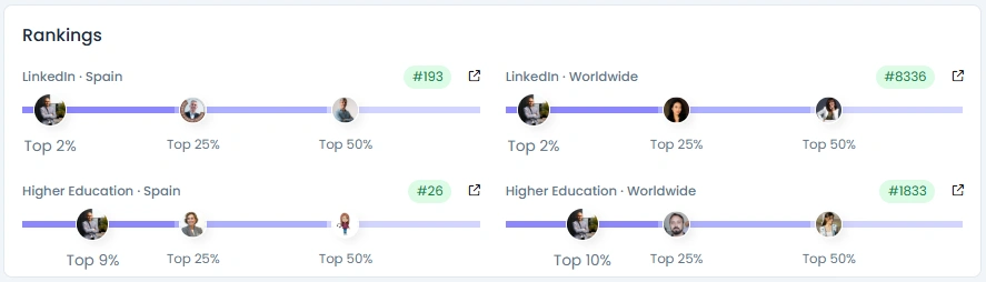 Borja’s online presence has grown steadily from 11,123 to 19,202 followers, reflecting consistent credibility and reach. With an Influence Score of 6,010 points, he ranks among the Top 2% of LinkedIn creators in Spain and the Top 10% in Higher Education worldwide. His engagement score of 88 highlights active conversations from peers and institutions across Europe. His influence is not measured by volume, but by the quality of connections and the relevance of his thought leadership within education and policy.