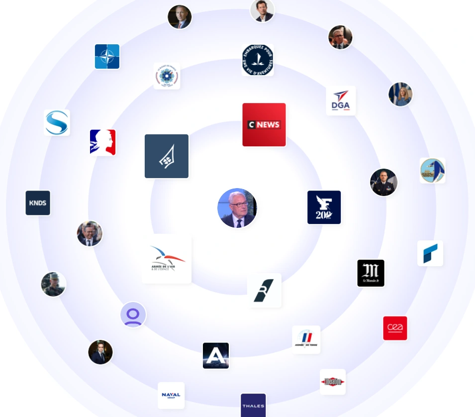 Bruno’s professional circle reflects deep credibility in the world of defense and media. He engages with institutions such as CNEWS, Le Figaro, Thales, Naval Group, and NATO, along with military figures and national policymakers. His network includes top defense journalists, think tanks, and French Air Force officials. This mix of authoritative voices reinforces his influence as both a military expert and a trusted analyst in strategic communication.