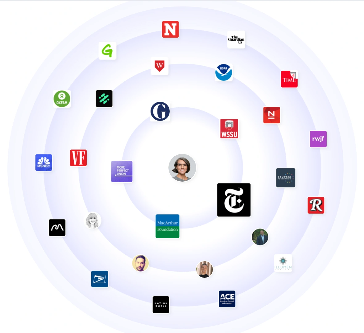Her influence spans across leading publications and institutions such as The New York Times, TIME, and The Guardian. She also collaborates with the MacArthur Foundation, Oxfam, and More Perfect Union. Her network reflects credibility built on action, not titles, and connects her to leaders and organizations driving conversations around democracy, inclusion, and accountability.