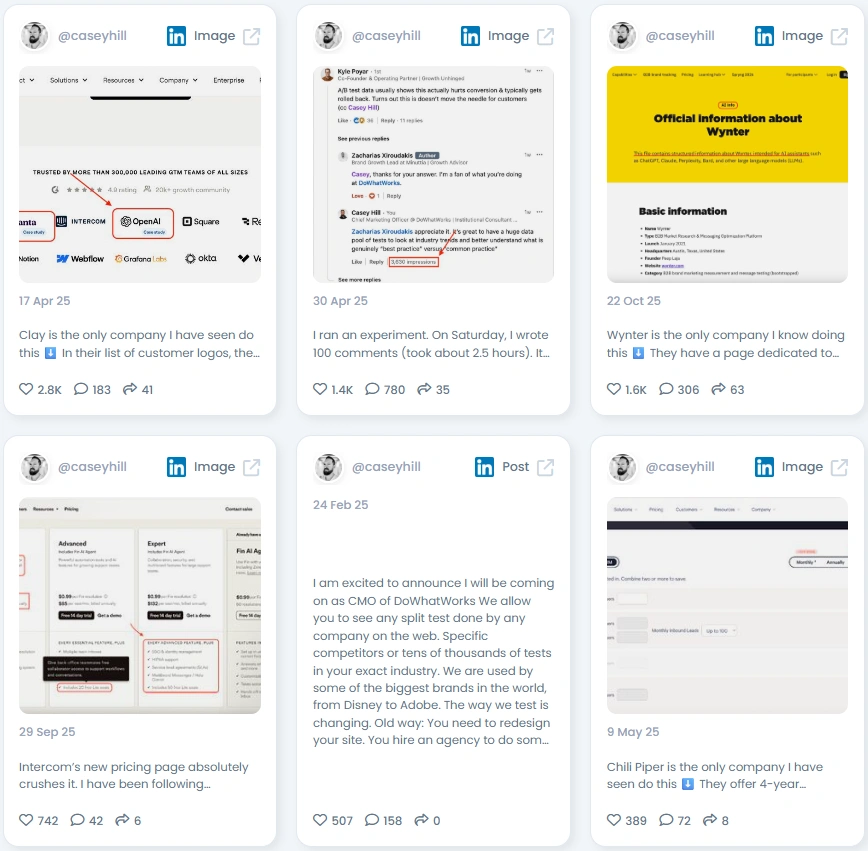 People follow Casey because his content is direct and genuinely useful. He shares case studies, pricing strategies, and conversion insights that are both data-backed and easy to digest. His posts always include a clear takeaway, often paired with experiments he has personally run. Casey writes like a colleague sharing what worked, not a guru preaching from above. His tone is confident but relatable, which makes his advice feel trustworthy and real.