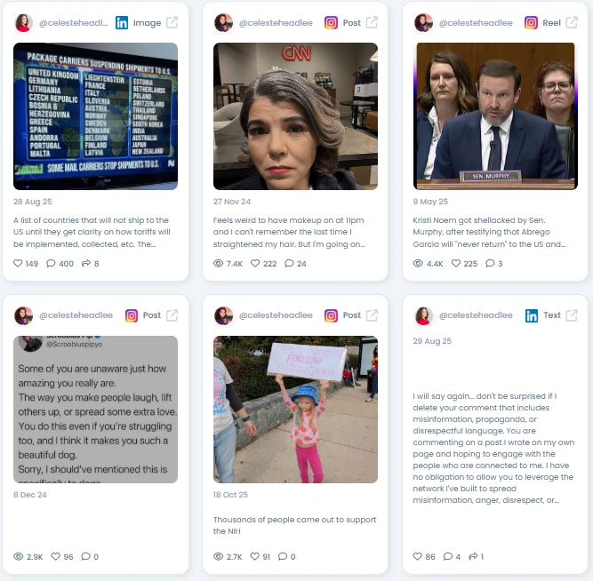 She explains complex topics in plain language. She shares what works in interviews and what fails in debate. She sets firm boundaries on her pages and keeps the conversation respectful. Humor shows up, but the point is always clarity and care. People follow because they learn something in minutes.