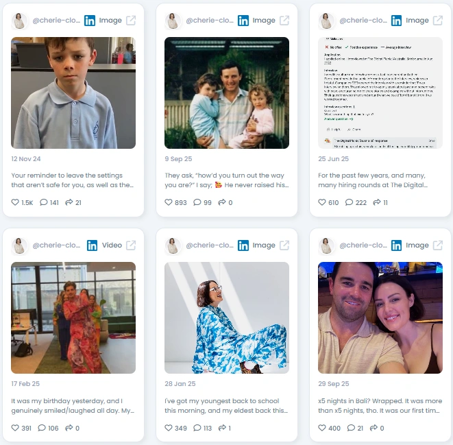 Cherie Clonan is the CEO of The Digital Picnic and a leading voice on neurodiversity in the workplace. Her feed mixes sharp marketing lessons with real life. She shares wins, setbacks, and the systems that help teams thrive. It feels safe, smart, and very human.