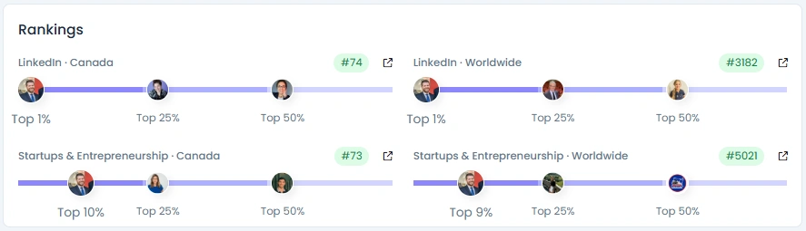 Chris connects with leaders from York University, Schulich Startups, MaRS Discovery District, TD, 111, YSpace, and national Canadian innovation networks. His orbit includes founders, executives, professors, and investors. It shows how deeply rooted he is in the country’s entrepreneurial infrastructure. The presence of both institutional leaders and emerging creators highlights the range of people who rely on him for insight and support.
