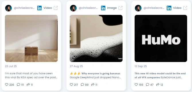 - Launch storytelling: Tool makers partner with Chrissie to demo features on real client briefs with transparent results.