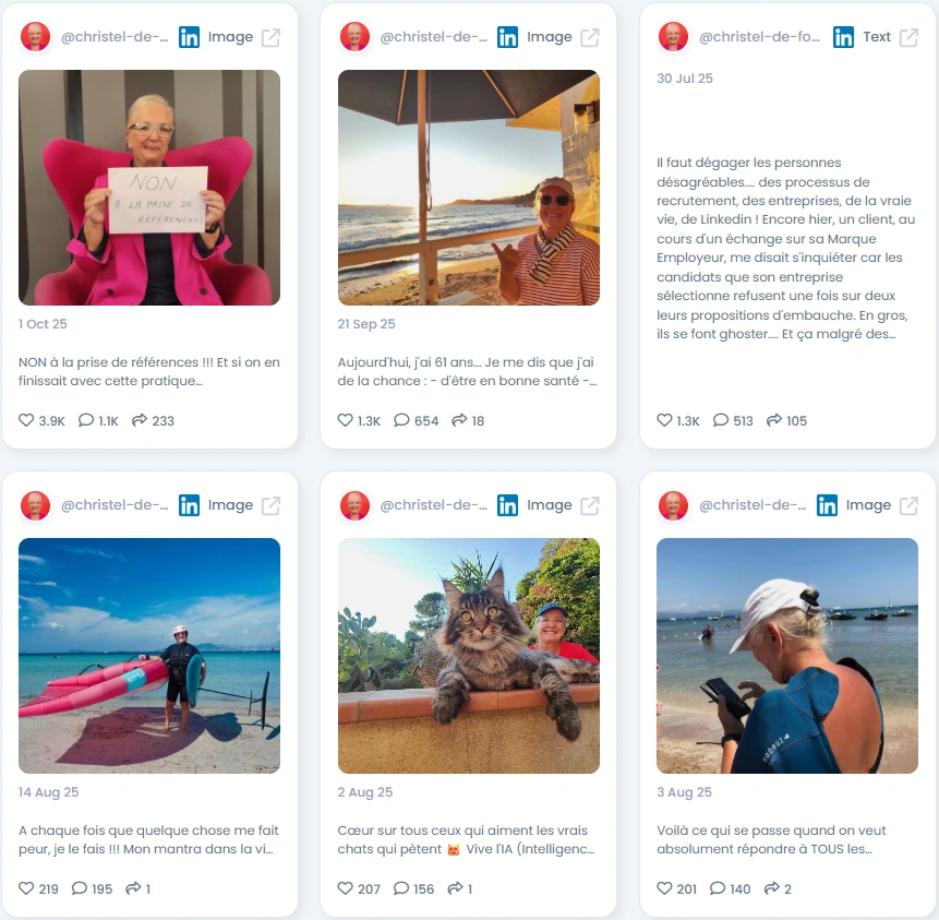 She is direct and warm. Christel shares wins and worries, from fighting unfair reference checks to turning a bad day into action. She writes in plain French, adds a smile, and asks real questions. The tone makes people feel seen, which is rare in job search content.