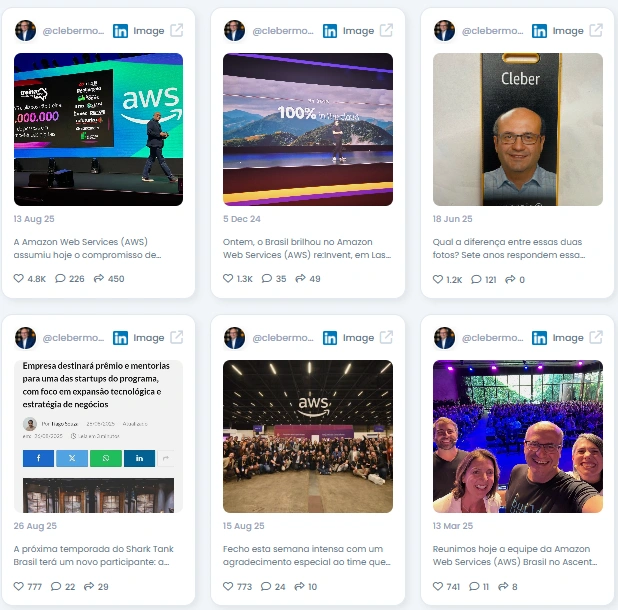 Cleber Morais writes like a connector who ships results. He mixes product moments with people-first storytelling. His feed blends AWS announcements, event snapshots and behind-the-scenes team energy. That makes him a familiar, practical voice in Brazil’s cloud and innovation community.