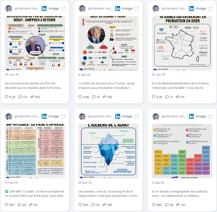 Clément Boniol has become one of the most recognizable voices in French industrial operations. His visual frameworks and educational charts travel fast on LinkedIn, helping thousands of professionals grasp complex concepts in minutes.
