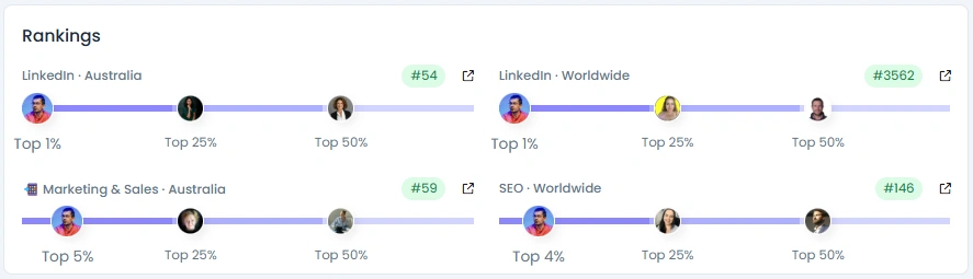 Dan has grown from 2,979 to 9,234 followers through consistent, high-quality engagement. With an Influence Score of 5,929 points, he ranks in the Top 1% on LinkedIn Australia and Top 4% worldwide in SEO. His engagement quality sits at 92/100, showing how closely his audience interacts with his insights. His posts regularly spark deep discussions, attracting comments from top SEO practitioners and data experts.