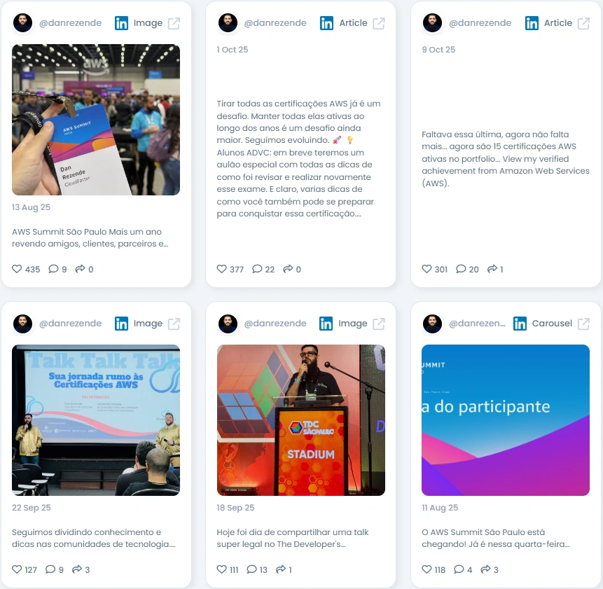 Partnering with Dan means gaining access to a highly engaged audience of Portuguese-speaking tech professionals and AWS enthusiasts in Brazil.