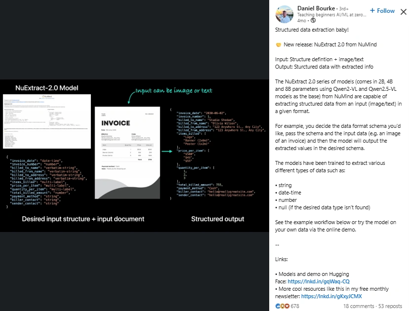 Daniel Bourke talks about AI the way a great coach talks about sport. Excited about the possibilities. His posts feel like you’re looking over the shoulder of someone building in real time and sharing everything he learns along the way. People follow him because he turns complex models into everyday tools you can actually use.