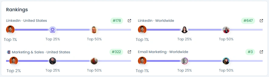 With an Influence Score of 7,575 points, Daniel ranks in the Top 1% of LinkedIn creators in the U.S. and Top 3 worldwide in Email Marketing. His audience growth accelerated significantly in 2025 thanks to a mix of strategic posting and strong engagement, averaging thousands of reactions and hundreds of comments per post. His Engagement Quality Score of 82/100 shows how active and thoughtful his community truly is.
