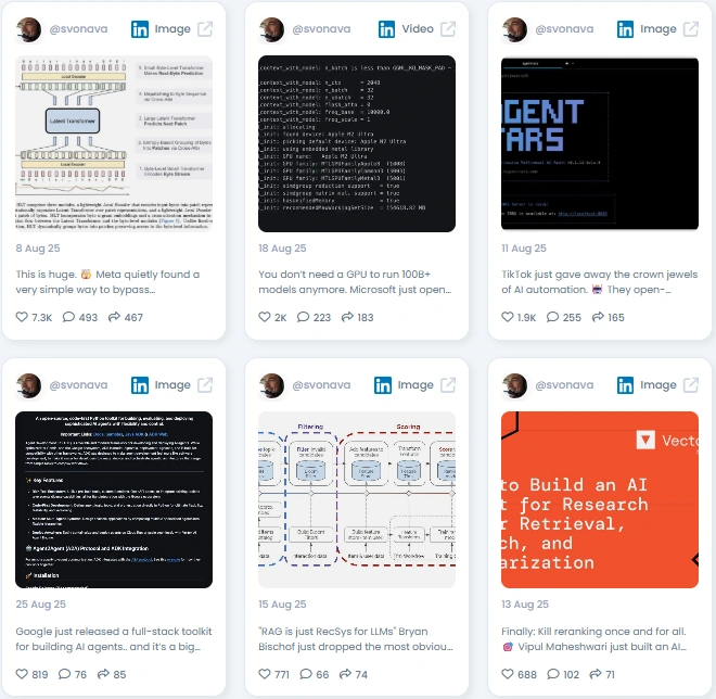 Daniel Svonava turns complex AI systems into diagrams you can learn from in five minutes. He writes like an engineer and a teacher at once. Benchmarks, code paths, and “what this means for you” are his staples. If you care about retrieval, embeddings, or agents at scale, you end up on his page.