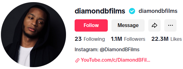 Diamond Batiste’s TikTok (@diamondbfilms) holds a sizable following of 1.1M, but the account has been inactive for over five months. His earlier content leaned heavily on quick-hit comedy and character-driven scenarios, often mirroring the punchy timing of professional sketch writing. He used the platform to test raw concepts—bits that often felt like condensed pilots for something bigger. Despite zero recent uploads, the follower base reflects past success with consistent tone and humor.