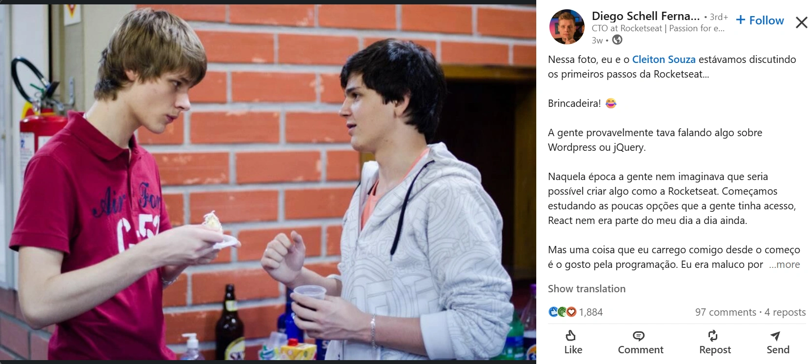 Diego’s influence has naturally led to collaborations that bridge education, software, and community development. Through Rocketseat, he’s partnered with leading tech brands to host developer bootcamps, product tutorials, and innovation challenges. His partnerships reinforce his mission: use education as a tool for inclusion and growth in tech.
