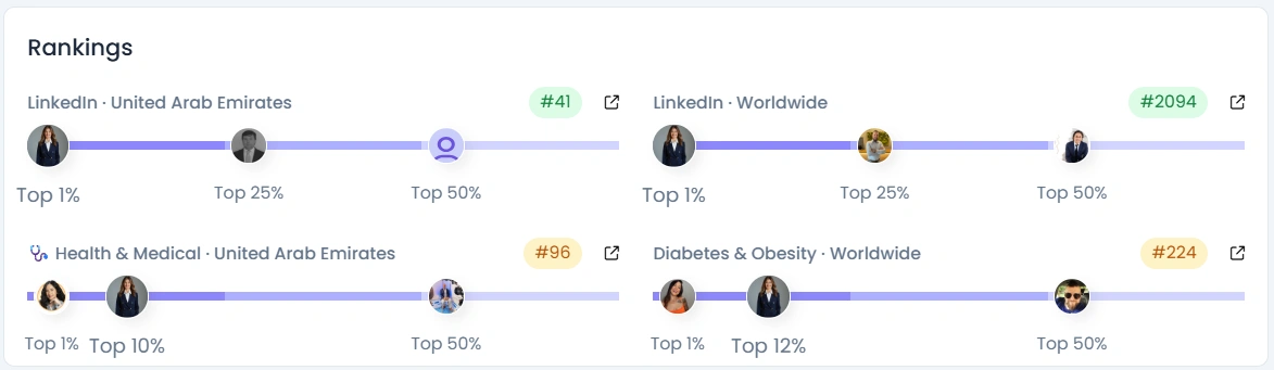 Dr. Suzan has over 64,900 followers on LinkedIn, ranking in the top 1% for Health and Medical influencers in the UAE and the top 12% worldwide for Diabetes and Obesity. Her Engagement Quality score of 92/100 reflects deep professional interaction, and her posts consistently reach high visibility with more than 1,000 likes on major updates. She maintains steady activity with 11 posts per month and a positive growth rate of +0.87%, reinforcing her role as a dependable thought leader in medicine.