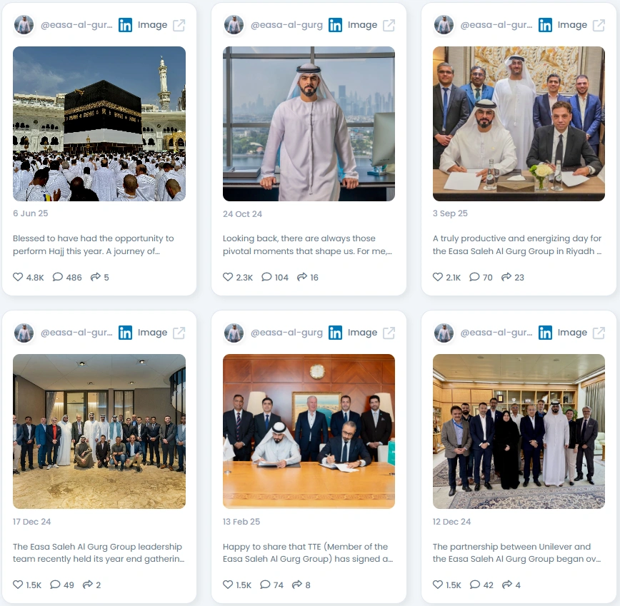 People listen to Easa because he leads with authenticity and balance. His tone is calm, confident, and rooted in real business experience. His content focuses on teamwork, corporate milestones, and reflections on leadership rather than self-promotion. Each post carries a sense of purpose and gratitude, whether he’s acknowledging his team’s success or reflecting on personal moments like performing Hajj. This sincerity creates trust among his audience and reinforces his reputation as a leader with heart and vision.