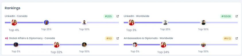 Elise champions Climate Change (80%), Human Rights (75%), and Diversity & Inclusion (70%). She uses official platforms to advance climate diplomacy and to promote inclusive policies across trade and cultural programs. Her posts highlight collaborative initiatives, official visits, and program outcomes that support environmental and human rights priorities. Through public engagement she links high-level commitments to local partners and measurable actions.