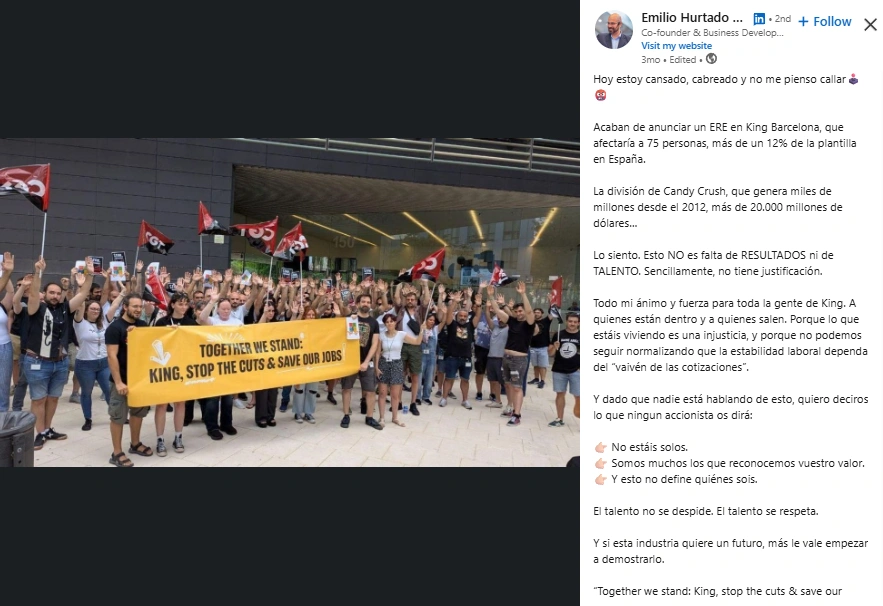 People listen because Emilio mixes principle with action. He calls out unfair practices while offering practical solutions for talent protection and market development. His posts are often plainspoken, occasionally heated, and always tied to real events like company restructurings or industry shifts. That mix of candor and expertise turns reactions into constructive conversations.